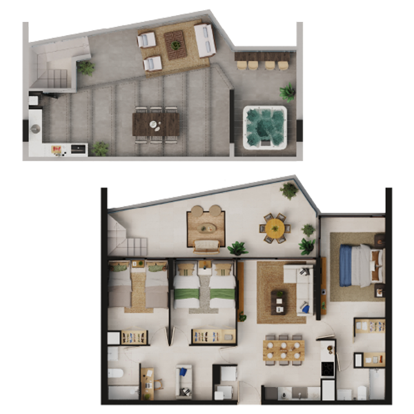 Penthouse tipo 2 y 3 • Orientación Nor o Sur Poniente